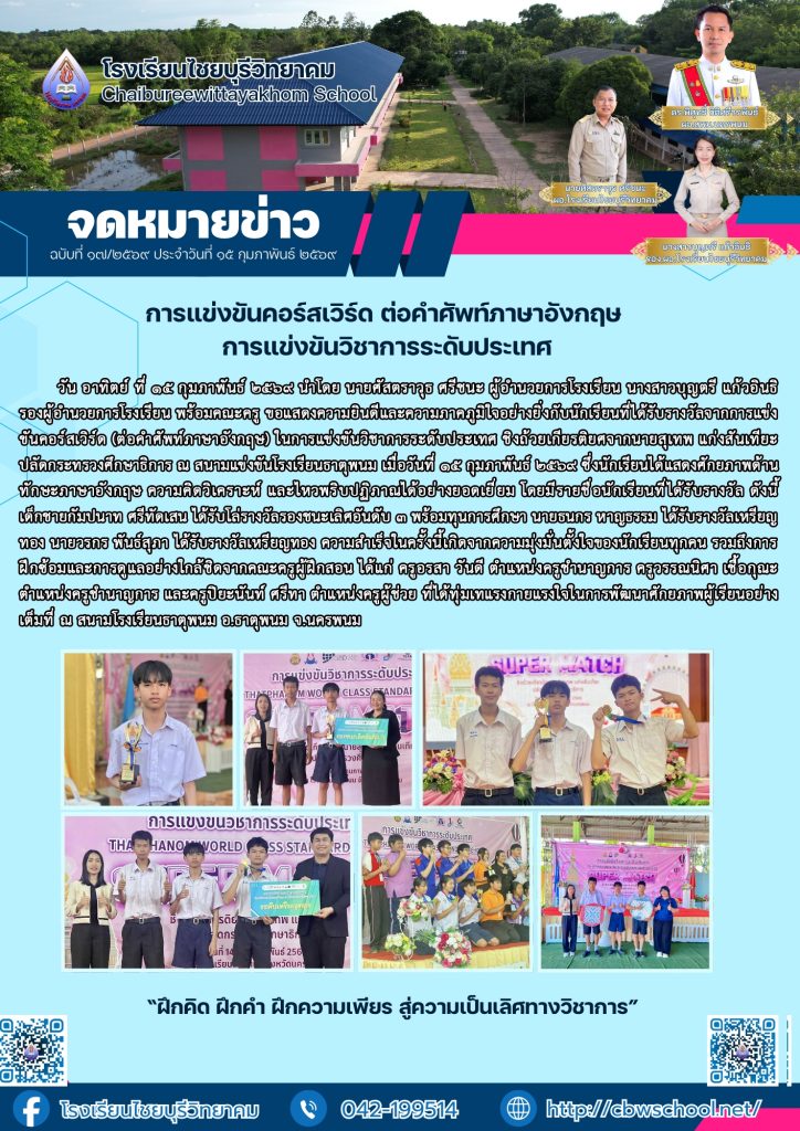 จดหมายข่าวประชาสัมพันธ์ จดหมายข่าวประชาสัมพันธ์ ฉบับที่ 17/2569 ประจำเดือนกุมภาพันธ์ 2569 17/02/2026 ธนวัฒน์ จุลศรี